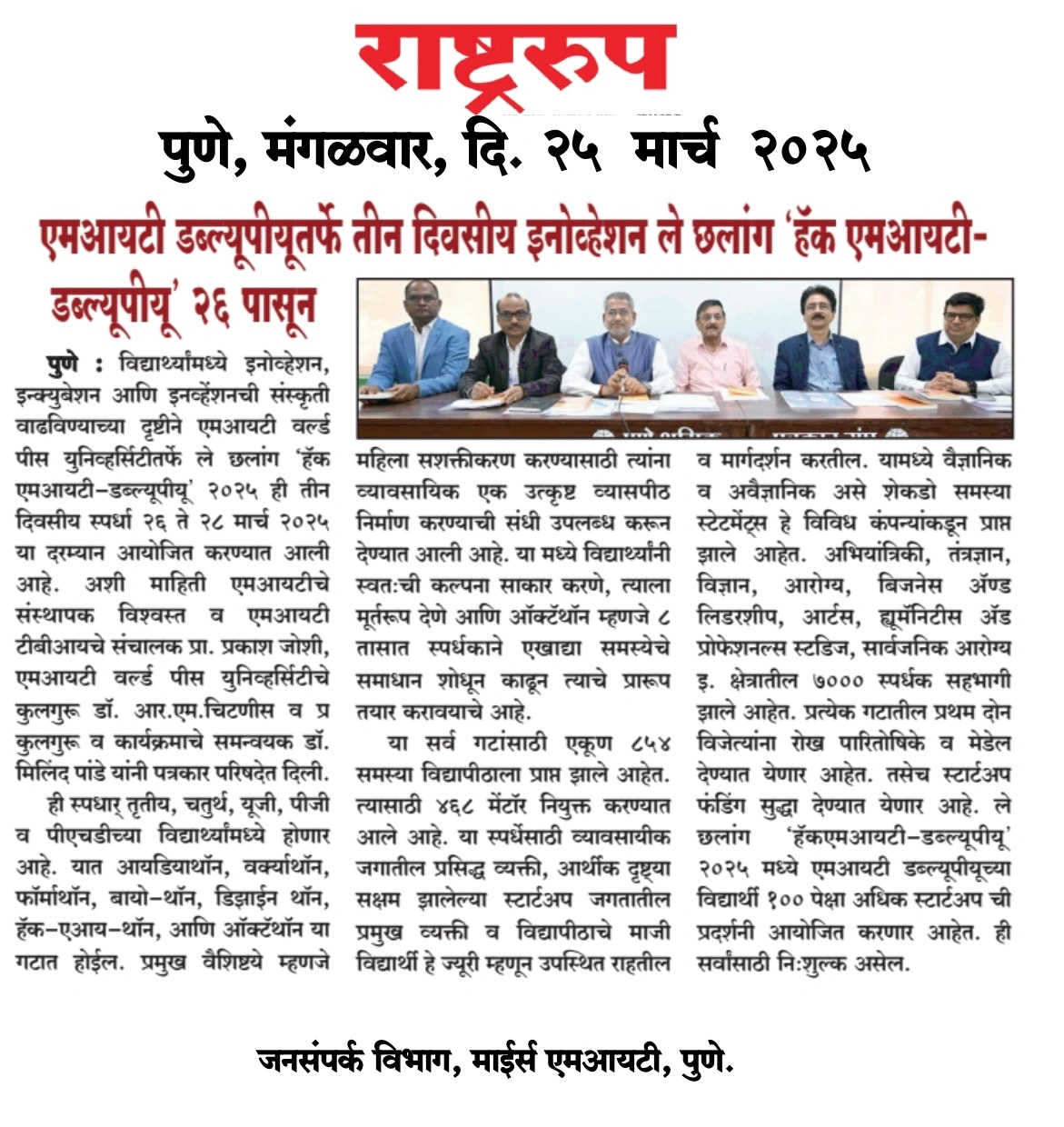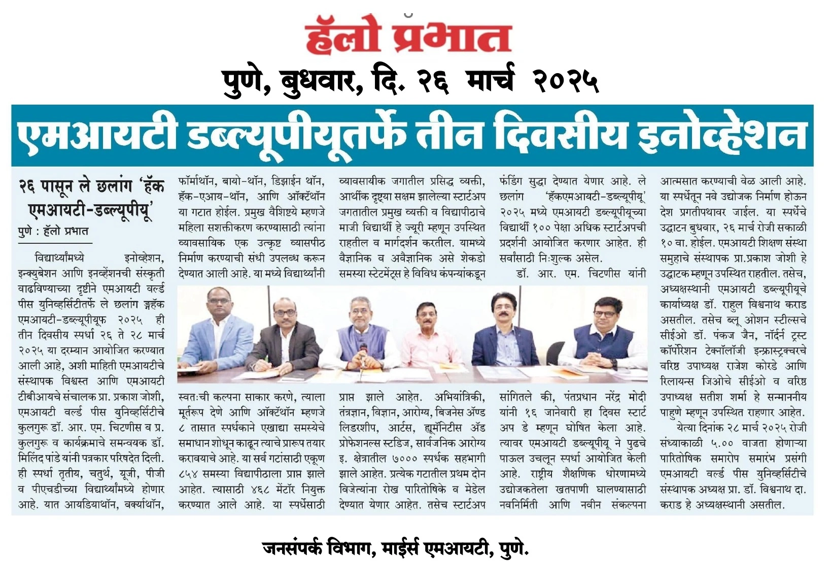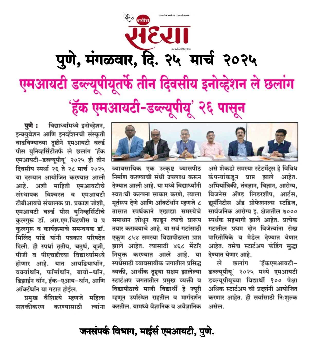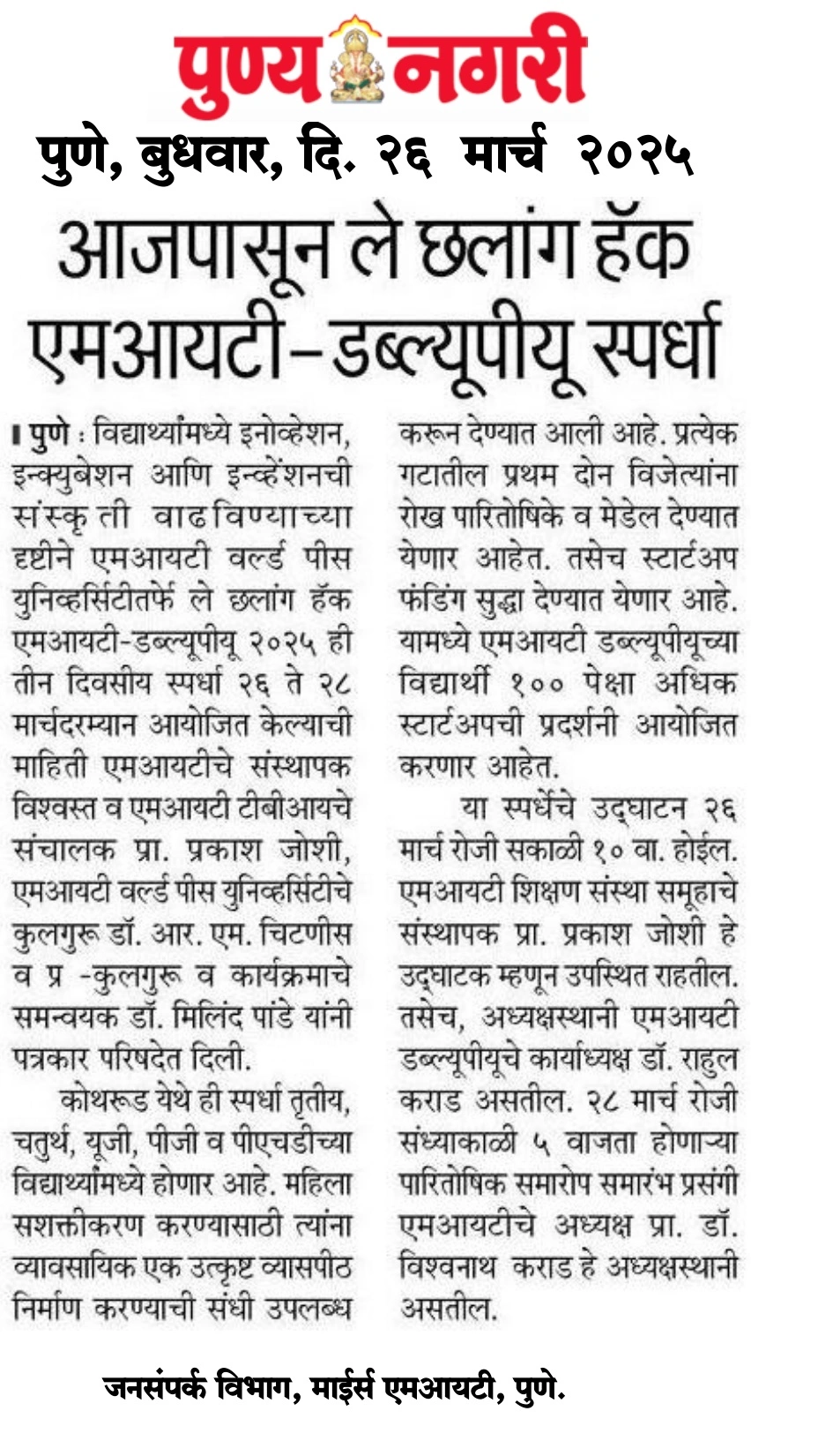 Pro Vice Chancellor Office, MIT World Peace University, Kothrud, Pune – 411 038 Maharashtra, India